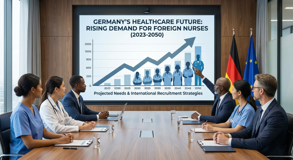 طبق آخرین داده های اداره آمار فدرال آلمان، تا سال ۲۰۵۰، کمبودی بین ۲۸۰ هزار تا ۷۰۰ هزار پرستار در آلمان وجود خواهد داشت. گرچه توسعه جمعیت شناختی و روندهای مثبت در بازار کار پرستاری از دهه ۲۰۱۰ میلادی در آلمان نیز منظور شده اند، ولیکن تقاضا برای نیروی پرستاری در آلمان آشکارا از پیش بینی تعداد پرستاران جذب شده در این کشور همچنان بسیار بیشتر است.