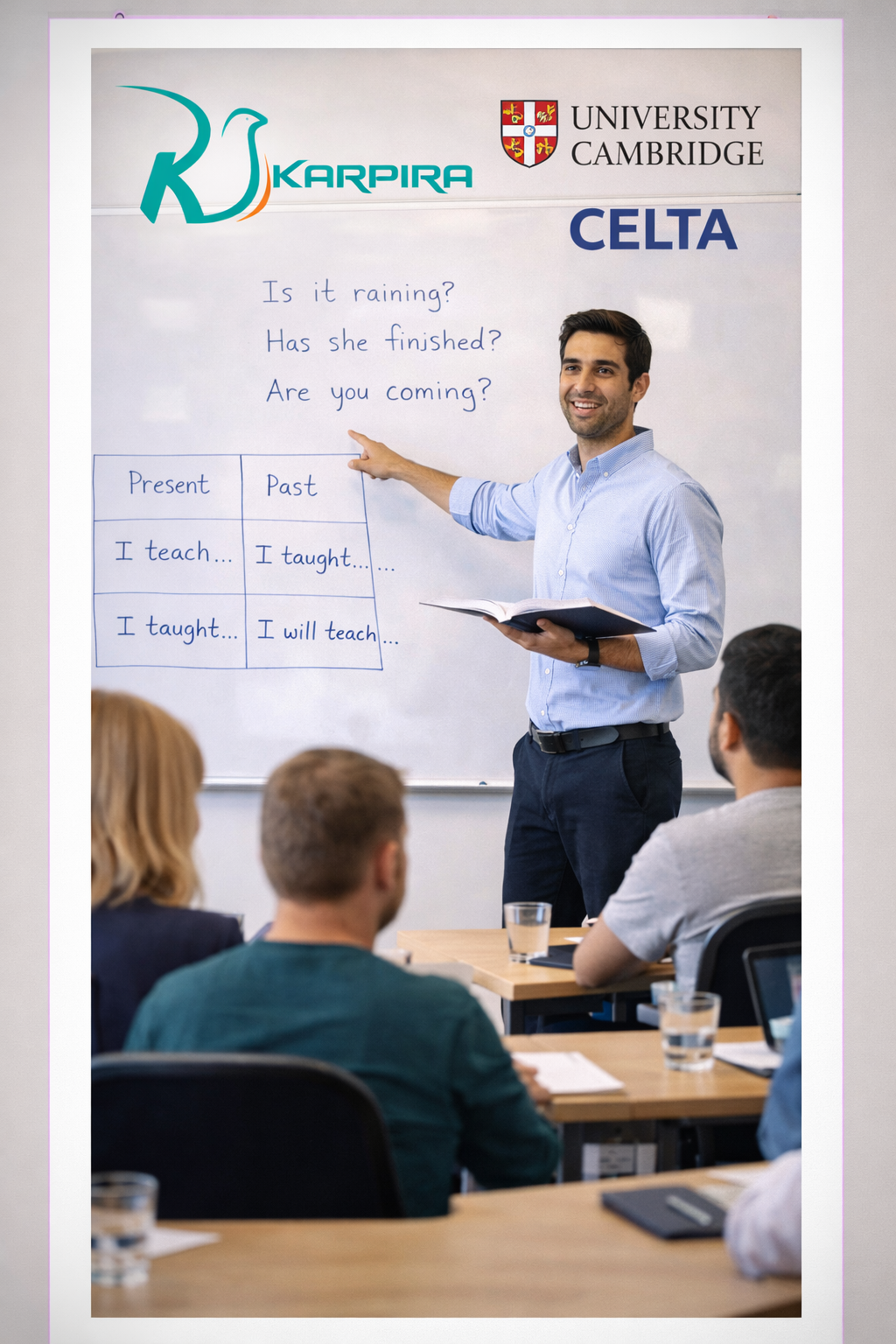 با پکیج +CELTA کارپیرا میتوانید این دوره تحولآفرین را بهصورت کاملاً آنلاین و تحت استانداردهای کمبریج بگذرانید و دروازههای شغلی جدیدی را به روی خود بگشایید.